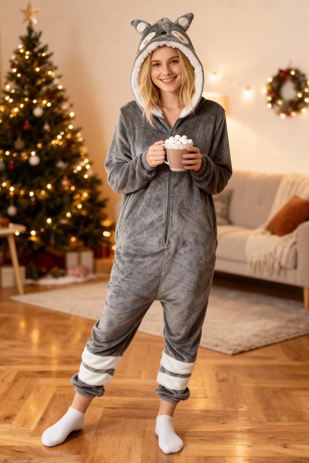 ciepło, przytulność i odrobinę humoru w domowym wydaniu. Kombinezon typu onesie