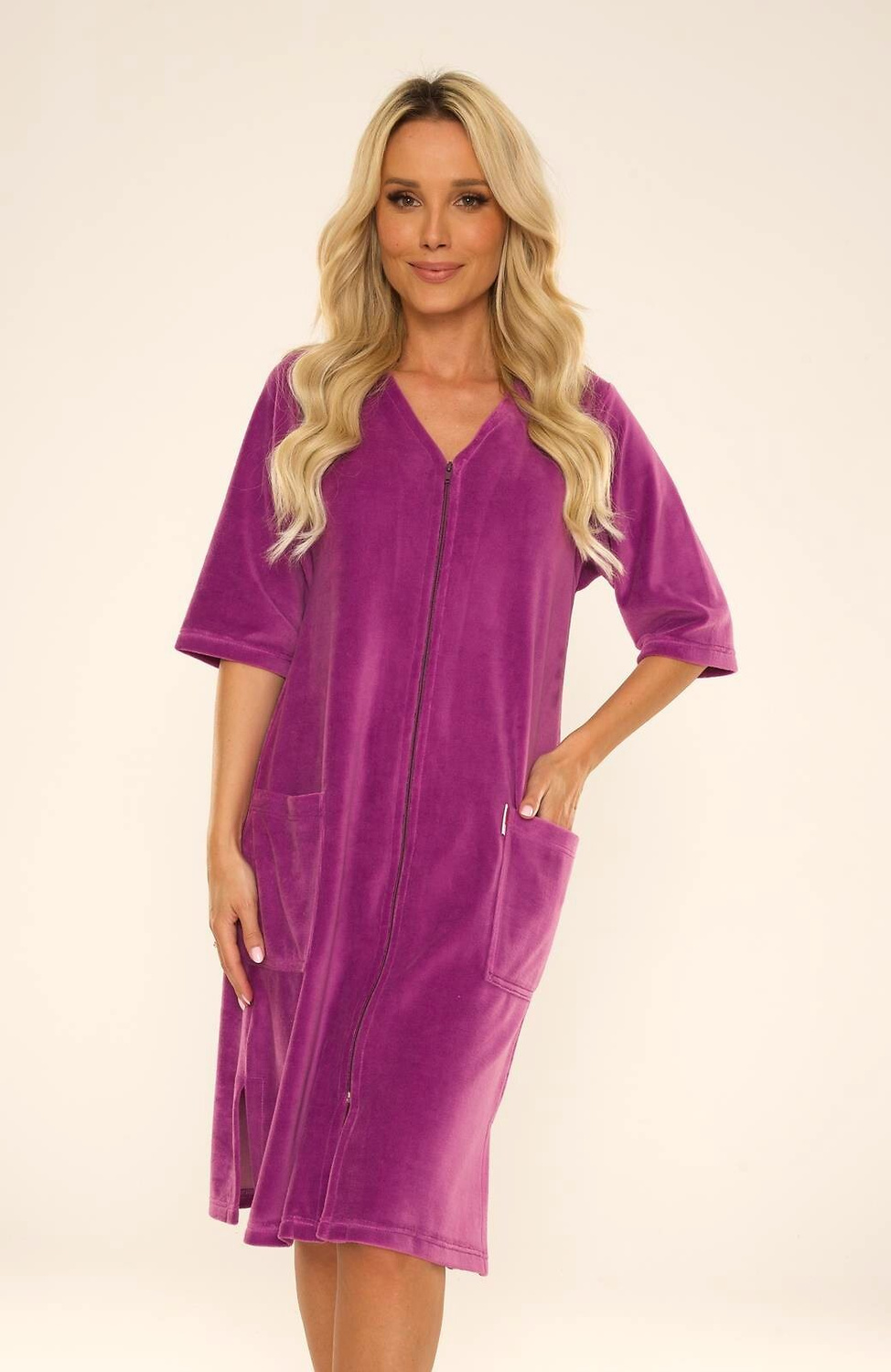 Szlafrok De Lafense 431 Welur zamek M-4XL damski bordowy Krótki szlafrok