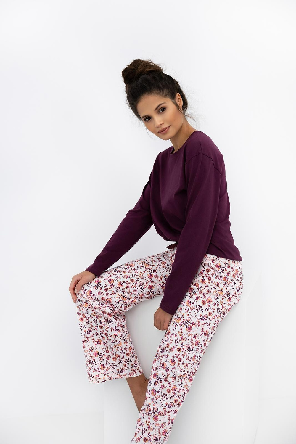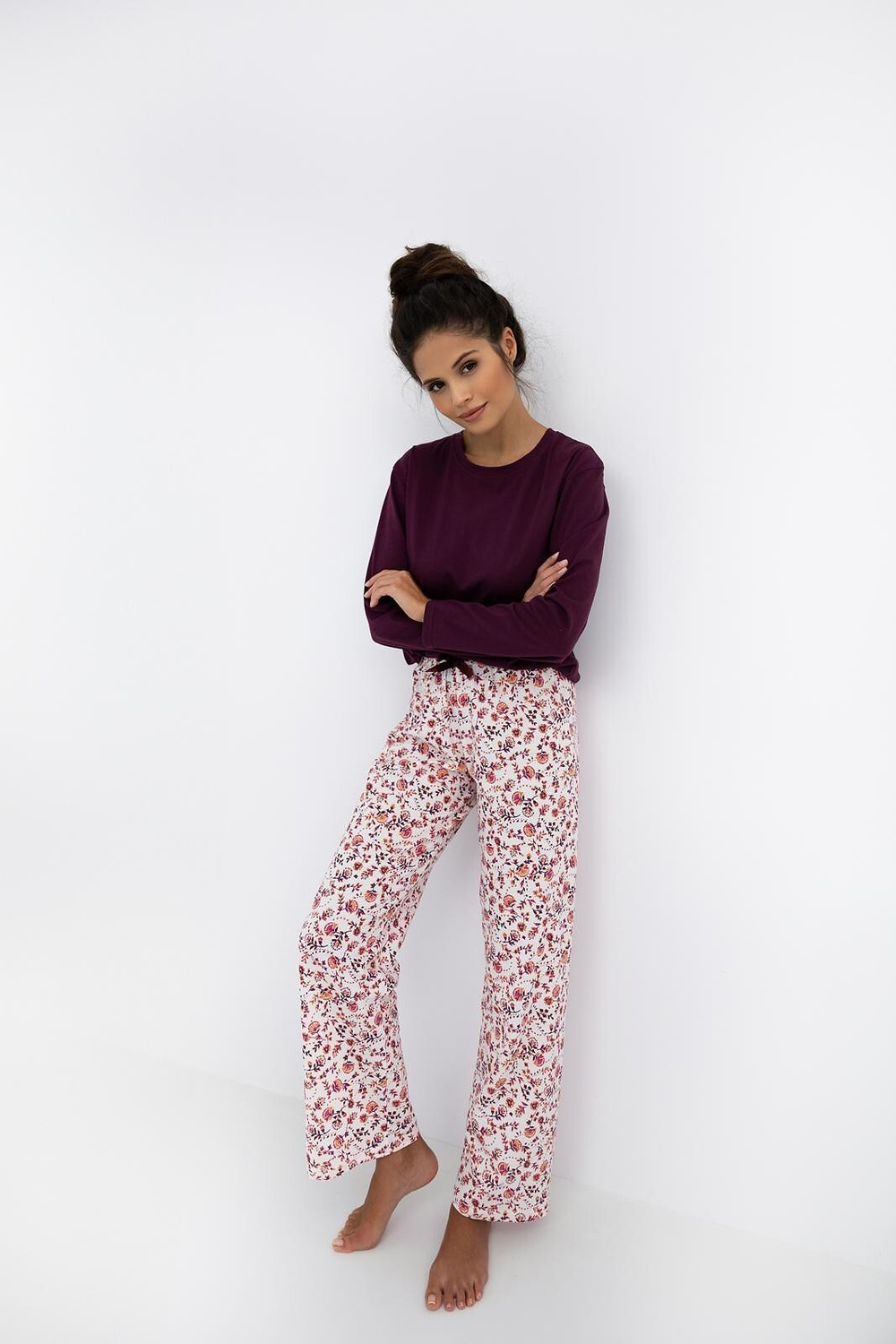 - długie spodnie, wzór w kwiatuszki