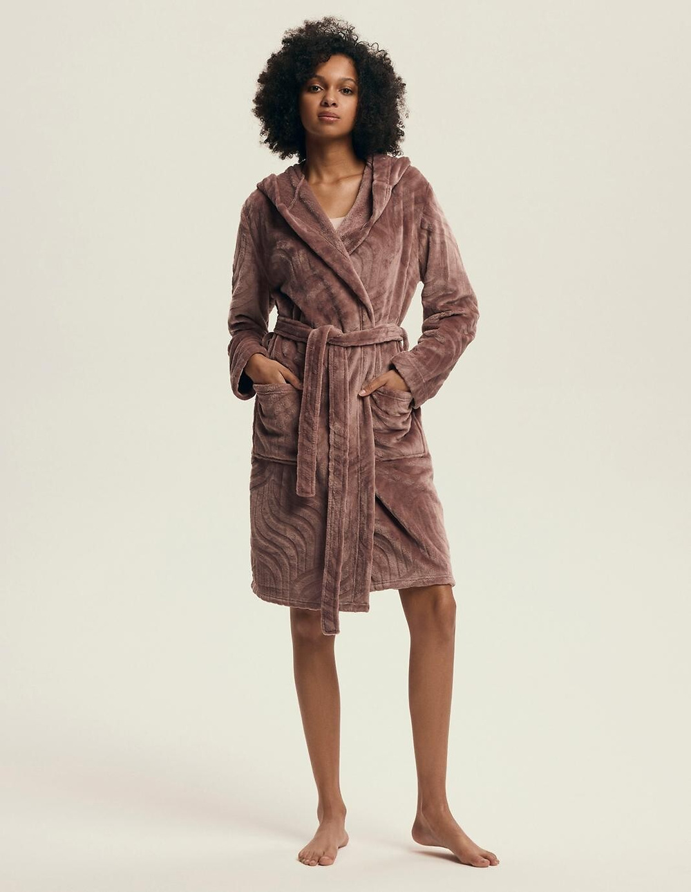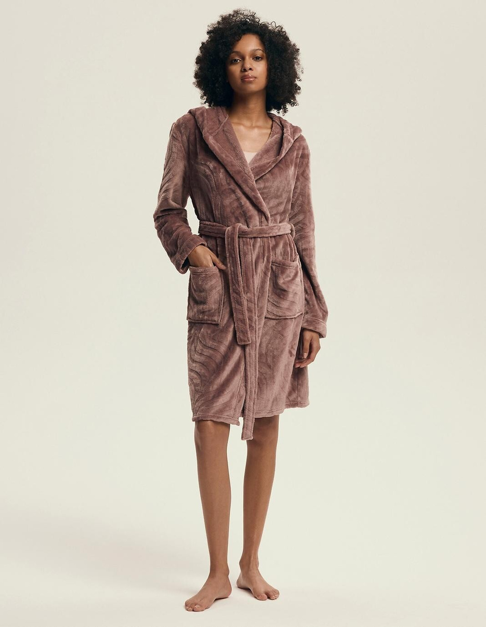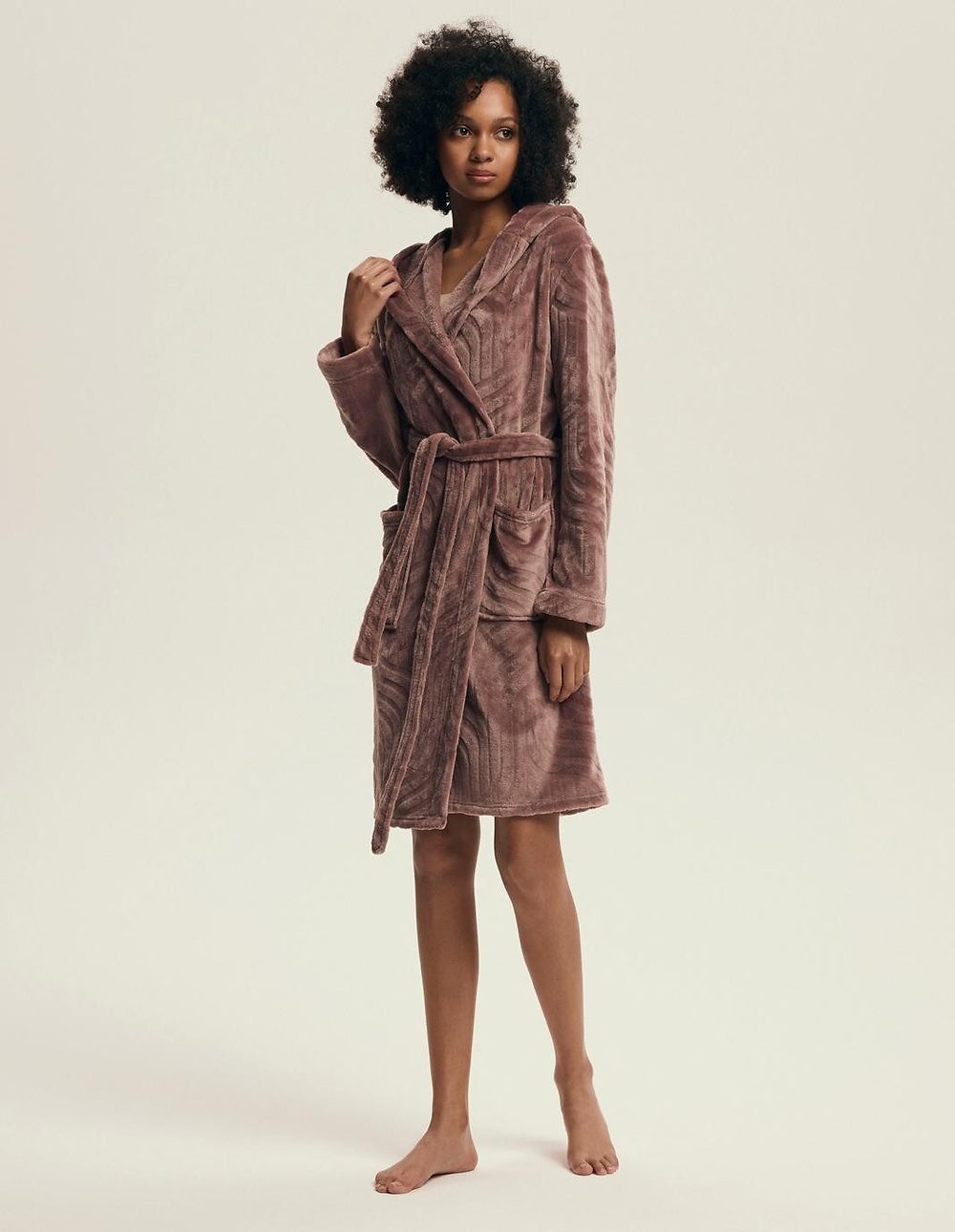 Szlafrok Henderson Ladies 43602 Devyn S-2XL mahogany Krótki szlafrok damski z kapturem