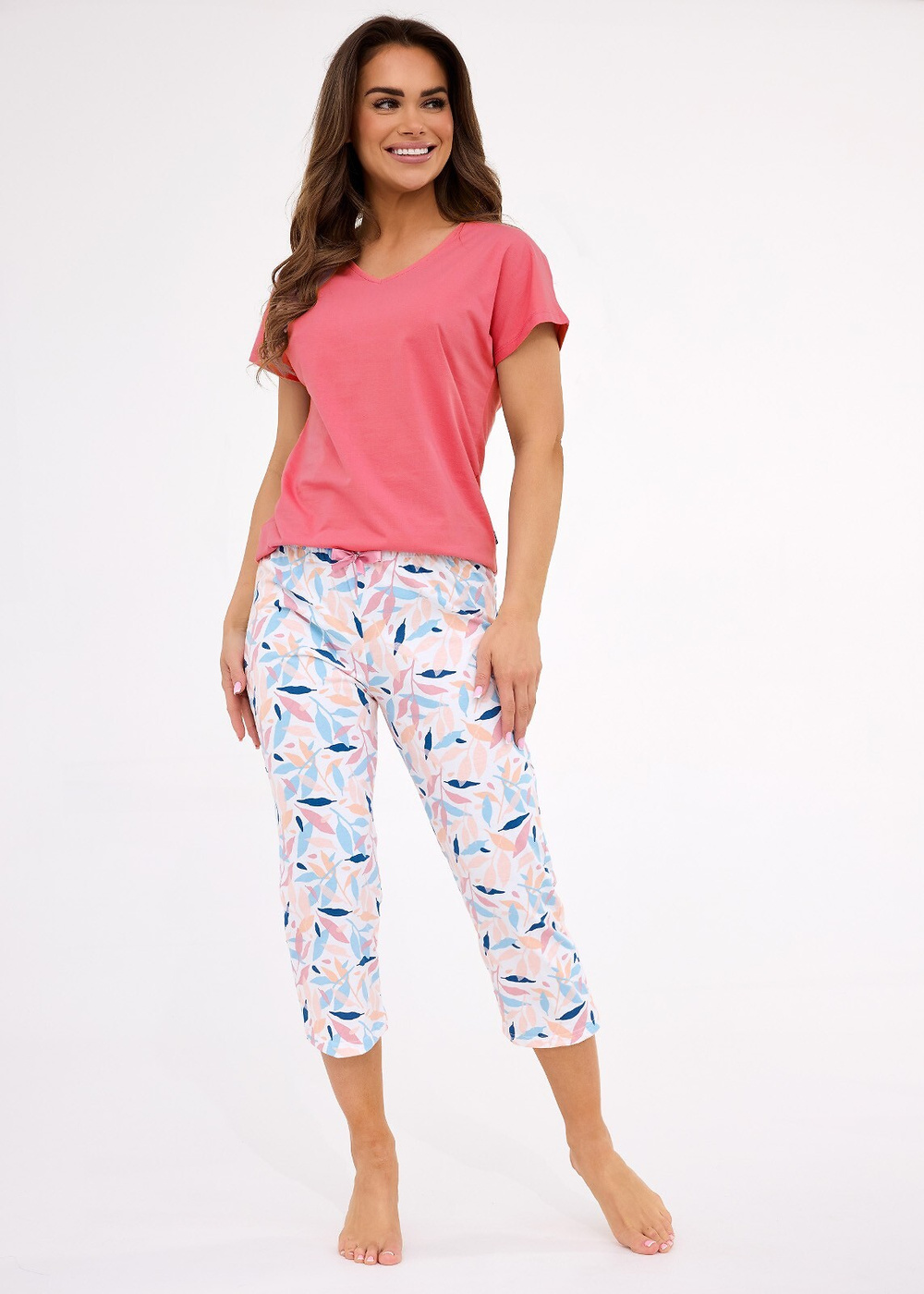 - bawełniane spodnie z nogawką 3/4, print w kolorowe listki