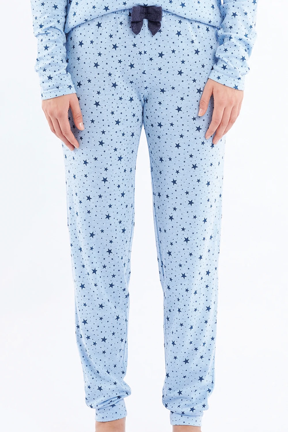 Miękka piżama damska z metalicznym napisem i kokardką DENISA, błękitna