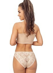 Figi damskie - wykonane z wysokiej jakości wiskozy - klasyczny krój - tył z delikatnej koronki o kwiatowym princie - cienkie wykończenie brzegów - dają poczucie lekkości i komfortu - pakowane w foliową torebeczkę na zatrzask   Skład: 95% wiskoza, 5% elastan