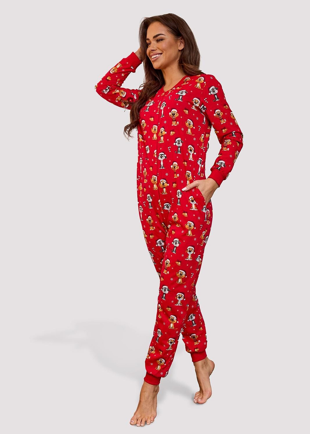 Kombinezon damski - wysokiej jakości bawełna - zimowy print - długi rękaw - wygodne zapięcie na suwak - po bokach kieszenie - mankiety i nogawki zakończone ściągaczem Skład: 100% bawełna