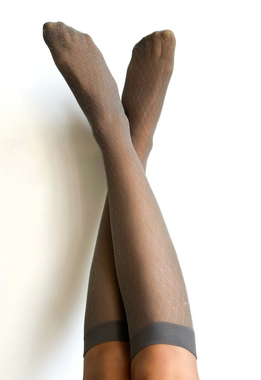 Podkolanówki Veneziana Rombini Lurex 15 den grigio-silver Wzorzyste podkolanówki damskie