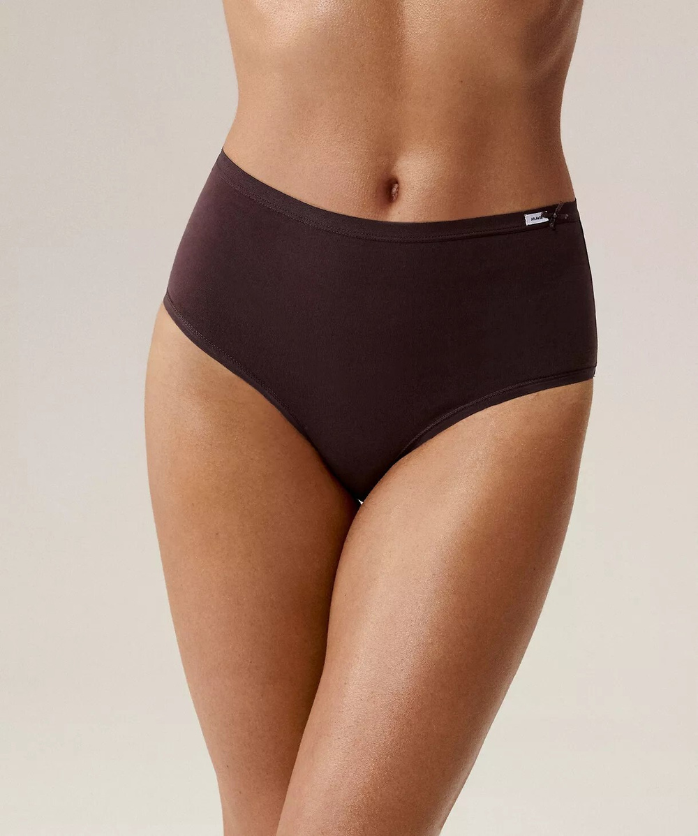 Figi damskie typu Maxi - z wysokiej jakości bawełny - w klasycznym, pełnym fasonie - komfortowe w użytkowaniu - w pasie wygodna gumka - pakowane w pudełko po 3 sztuki Skład: 95% bawełna, 5% elastan