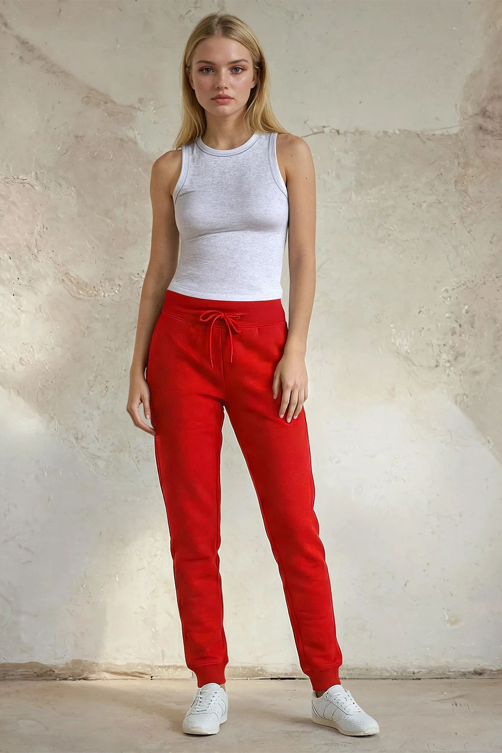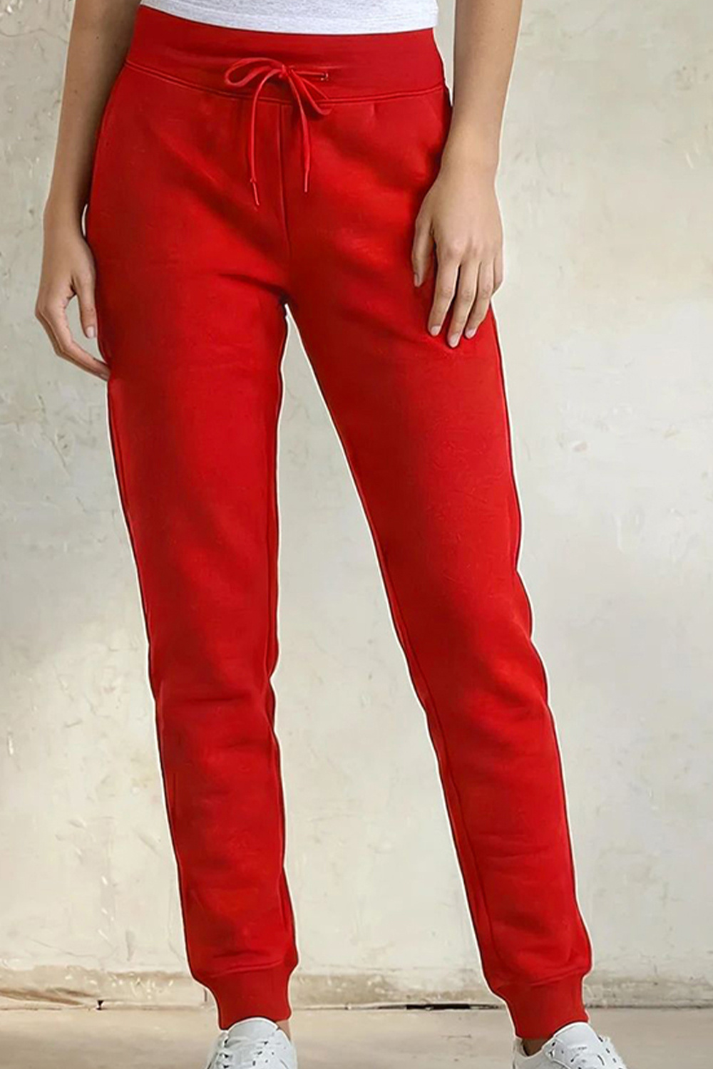Spodnie dresowe jogger ze ściągaczami i kieszeniami damskie, czerwone