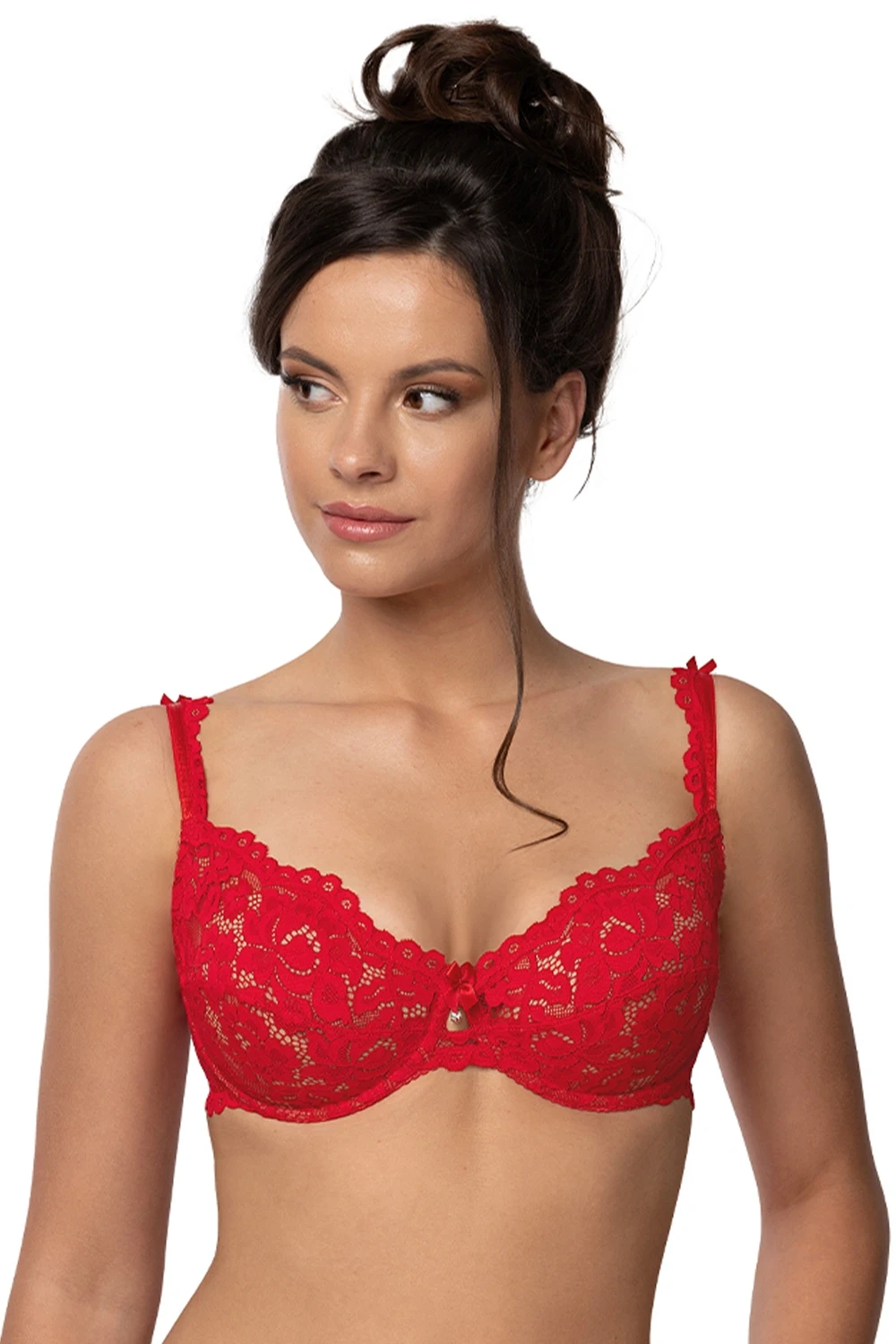 Zjawiskowy, pobudzający zmysły koronkowy biustonosz typu soft Newia w kolorze czerwonym – idealny wybór na walentynkowy prezent (również dla samej siebie). Subtelna koronka, kobiecy krój i dopracowane detale sprawiają, że czujesz się pewnie, wyjątkowo i komfortowo.