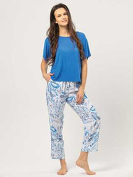 Urocza bawełniana piżama damska z liskiem ZERDA, niebieska